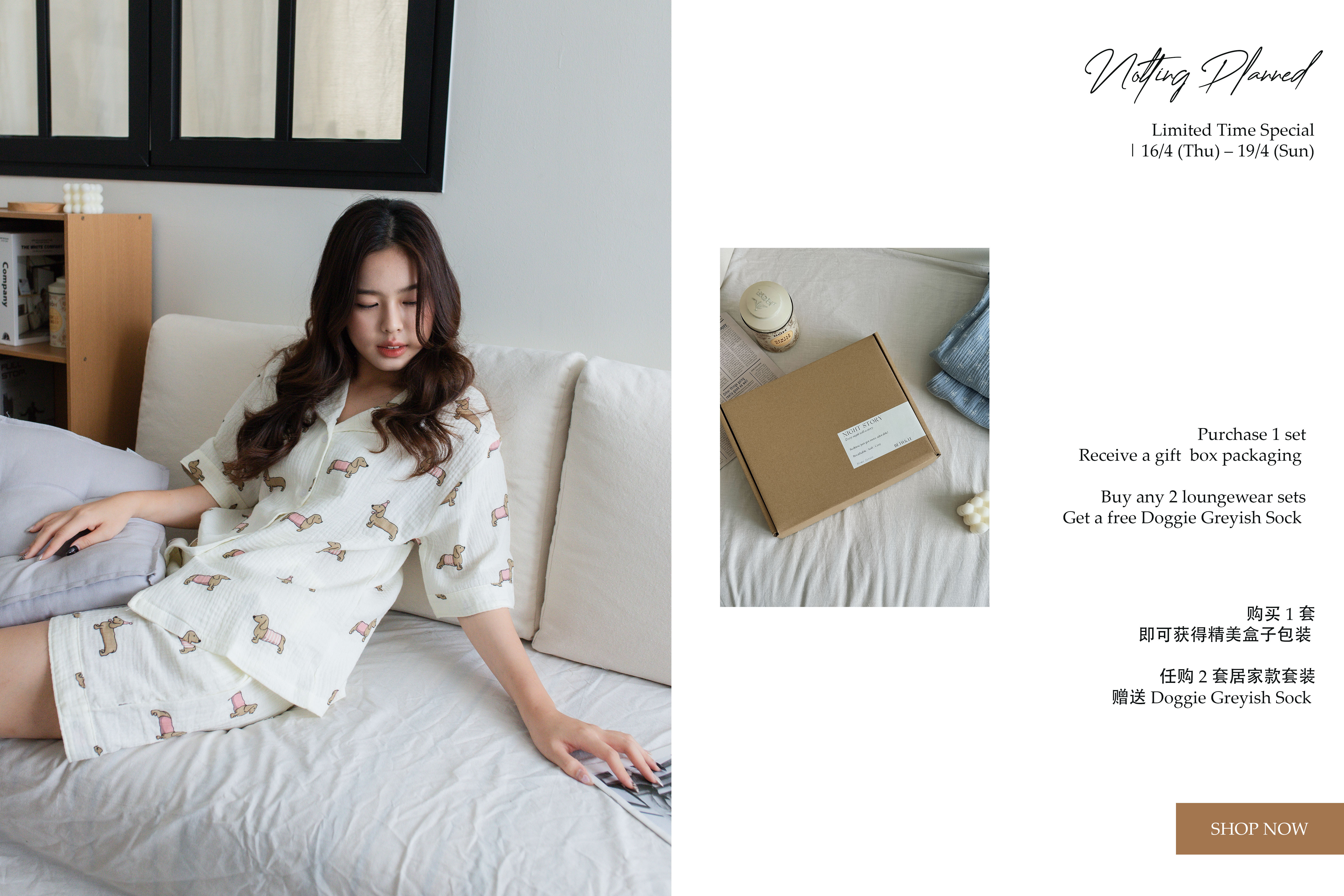 Buy any 2 lounger sets wear will get a free Doggie Greyish Sock